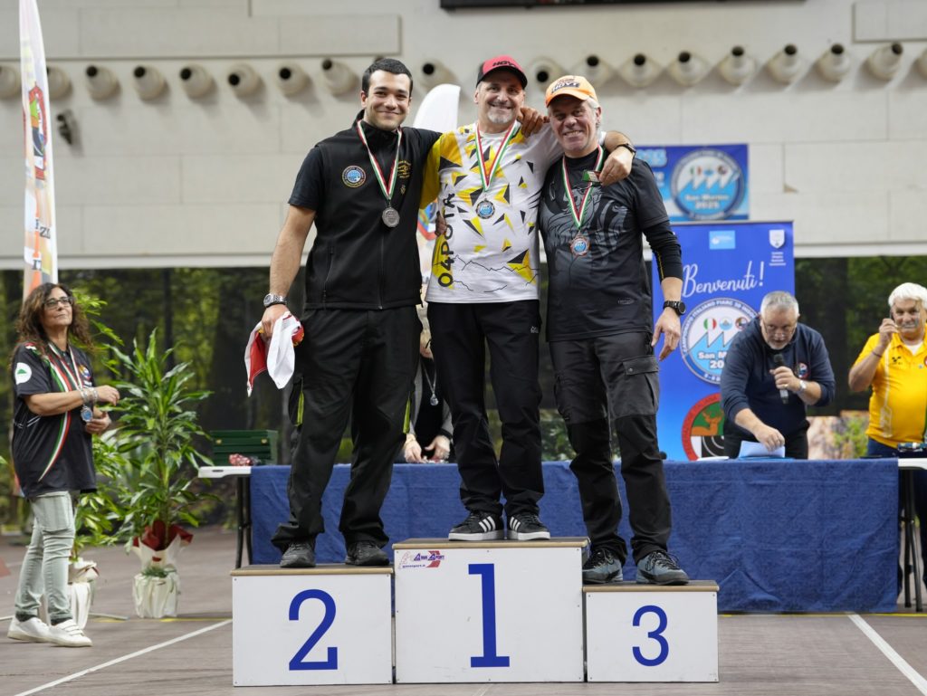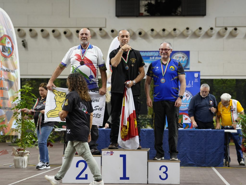 Ma il nome che rimarrà scolpito nella memoria di questo campionato è quello di Gabriele Muti. La sua ultima gara è semplicemente perfetta. Freccia dopo freccia, il bersaglio è sempre il super. Nessuna distrazione, nessun cedimento. Attorno a lui avversari di grande esperienza, tra i più noti a livello nazionale nella categoria Arco Nudo, iniziano a perdere terreno. Muti no. Avanza come una tigre, sostenuto da un tifo degno di uno stadio, fino a conquistare l’oro e il titolo di Campione Italiano Indoor FIARC. Un successo netto, meritato, destinato a rimanere nella storia.