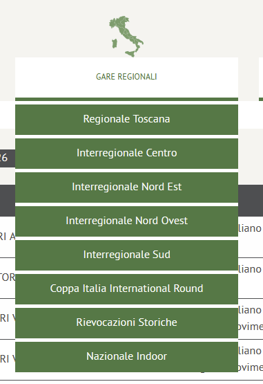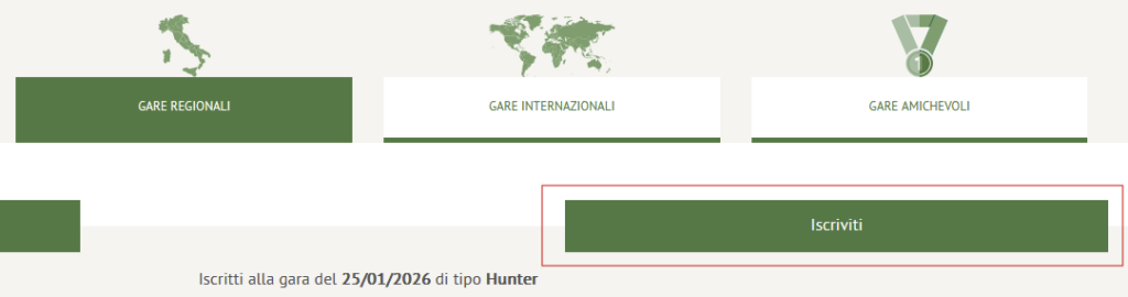 Selezionando ad esempio Interregionale Nord Est compare l’elenco delle gare disponibili in quell’area. Ciascuna riga ha dei pulsanti nella colonna corrispondente: