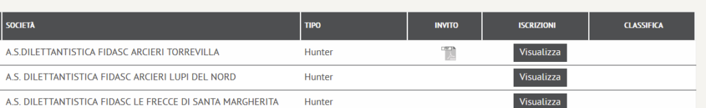- Iscrizioni mostra gli arcieri iscritti a quella gara. Da lì ci si può iscrivere a quella determinata gara.